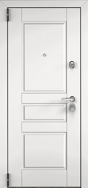 Белая металлическая дверь входная для дома №33 выделяется своим свежим и современным обликом. Универсальный белый цвет делает её уместной как в частном коттедже, так и в квартире или офисе, визуально добавляя простора и подчеркивая аккуратность фасада или интерьера. Конструкция двери основана на стальном листе толщиной 2 мм и усилена профильными трубами, что гарантирует надежность и устойчивость к нагрузкам. Важная особенность модели — наличие терморазрыва в полотне и коробке: благодаря этому дверь не промерзает в зимний период, исключается конденсат и сохраняется комфорт внутри помещения. Внешняя и внутренняя отделка выполнена из МДФ с ПВХ-покрытием, которое защищает поверхность от влаги и механических повреждений, сохраняя первозданный вид надолго. Два контура уплотнителя обеспечивают герметичность и дополнительную защиту от сквозняков. Эта дверь удачно сочетает эстетику и практичность, создавая надежный вход в любое жилище. Белая металлическая дверь входная для дома №33 от производителя: быстрое изготовление и монтаж в Дедовске, индивидуальные размеры, широкий выбор материалов и фурнитуры, официальная гарантия до 10 лет.