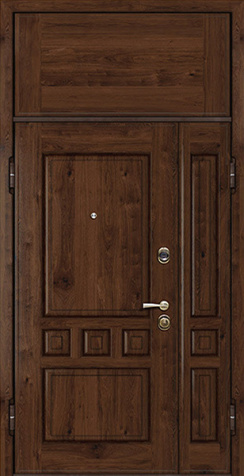 Элитная парадная дверь с фрамугой №4 станет не только защитой вашего дома, но и его визитной карточкой. Ее внешний вид, сочетающий плиту МДФ с ПВХ-покрытием, выглядит современно и гармонично, сохраняя стойкость к внешним воздействиям, таким как царапины и вмятины. Конструкция, выполненная из профильной трубы 50х25 мм и металлического листа толщиной 2 мм, гарантирует долговечность и прочность. Благодаря фрамуге дверь пропускает свет, добавляя пространству легкости. Встроенные замки с ригелями обеспечивают надежную защиту. Возможность выбора направления открывания и комбинирования отделок делает эту модель универсальной для любых интерьеров. Также можно дополнить дверное полотно зеркалом или стеклопакетом, а если требуется, заменить замки на более высокозащищенные модели. Элитная парадная дверь с фрамугой №4 от производителя: быстрое изготовление и монтаж в Дедовске, индивидуальные размеры, широкий выбор материалов и фурнитуры, официальная гарантия до 10 лет.