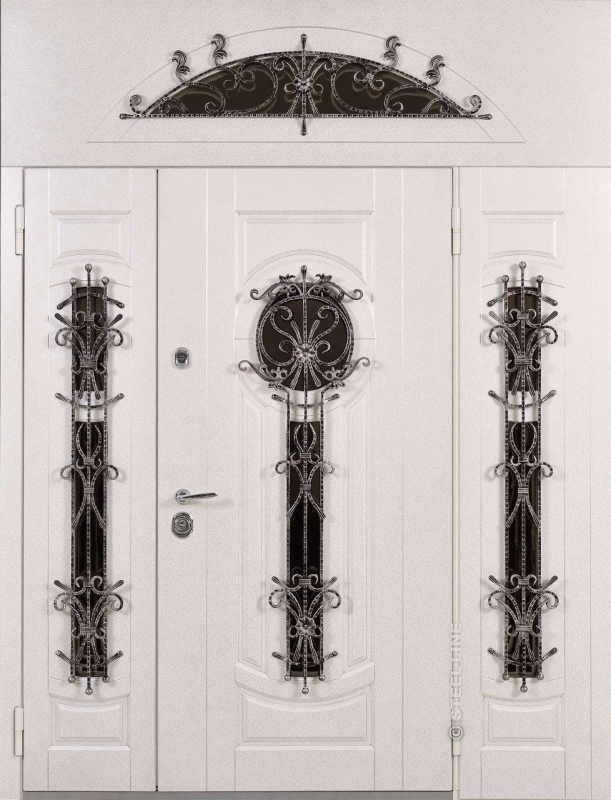 Входная дверь с кованой ручкой и фрамугой №6 представляет собой элегантное и надежное решение для тех, кто ценит не только безопасность, но и стиль. Эта модель идеально подойдет для оформления парадных входов в дома и офисы. Внешняя отделка из плиты МДФ придает двери современный и чистый вид, который сохраняется долго благодаря стойкости к внешним воздействиям. Благодаря профильной трубе с толщиной металла 2 мм и ребрам жесткости, конструкция двери гарантирует прочность и долговечность. Дополнительный элемент — кованая ручка, которая добавляет изысканности и подчеркивает высокий класс изделия. Стандартная комплектация не включает шумо- и теплоизоляцию, однако она может быть установлена по желанию. Резиновый уплотнитель с двумя контурами обеспечит хорошую герметичность, защищая от ветра и пыли. Подходит для установки как в частных домах, так и в офисах, привлекая внимание своим необычным и стильным дизайном. Входная дверь с кованой ручкой и фрамугой №6 от производителя: быстрое изготовление и монтаж в Дедовске, индивидуальные размеры, широкий выбор материалов и фурнитуры, официальная гарантия до 10 лет.