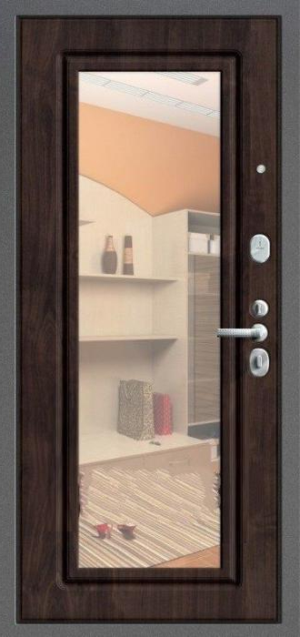 Каркас из профильной трубы и стальной лист толщиной 2 мм обеспечивают прочность конструкции и устойчивость к взлому, а два контура уплотнителей защищают помещение от сквозняков и уличного шума. Входная дверь в квартиру с зеркалом №10 выделяется сочетанием практичного молоткового напыления снаружи и аккуратной плиты МДФ внутри. Такое покрытие не боится механических повреждений и перепадов температуры, долго сохраняя первоначальный вид. Зеркало на внутренней стороне делает прихожую светлее и визуально просторнее, заменяя полноценное настенное. Дополнительные блокираторы и система ребер жёсткости усиливают надежность. Возможность изготовления в любых размерах позволяет адаптировать модель под особенности квартиры, офиса или частного дома, сохранив баланс между эстетикой и безопасностью. Входная дверь в квартиру с зеркалом №10 от производителя: быстрое изготовление и монтаж в Дедовске, индивидуальные размеры, широкий выбор материалов и фурнитуры, официальная гарантия до 10 лет.