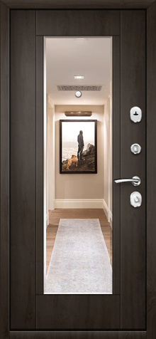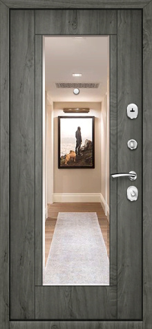 Эта модель создана для тех, кто ценит надежность металла и продуманную эстетику. Снаружи дверь защищена порошковой окраской, стойкой к атмосферным воздействиям и царапинам, что делает её долговечной даже при установке на улицу. Внутри используется МДФ с пленкой ПВХ, благодаря чему полотно выглядит аккуратно и легко вписывается в интерьер квартиры или офиса. Особое внимание заслуживает железная дверь с зеркалом №70: встроенное зеркало делает пространство прихожей визуально шире и добавляет практичности в повседневное использование. Конструкция выполнена из профильных труб и стали толщиной 2 мм, усиленных ребрами жесткости. Два контура уплотнителей надежно защищают от сквозняков, а терморазрыв в коробке и полотне предотвращает промерзание зимой. Дверь комплектуется замками российского производства с ригельной системой, при желании можно установить замки премиальных марок или смарт-модели, а также дополнить изделие видеодомофоном или декоративными элементами. Железная дверь с зеркалом №70 от производителя: быстрое изготовление и монтаж в Дедовске, индивидуальные размеры, широкий выбор материалов и фурнитуры, официальная гарантия до 10 лет.