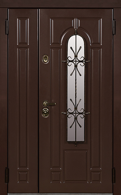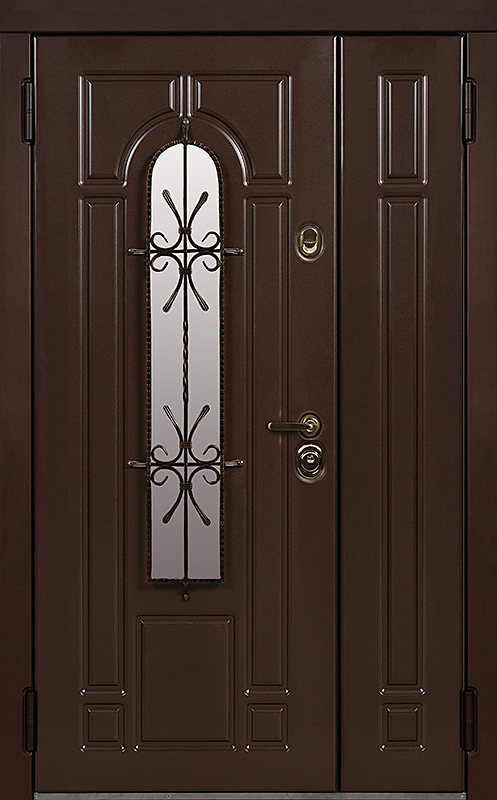 Эта металлическая двухстворчатая дверь с арочным стеклопакетом №15 представляет собой идеальный баланс между эстетикой и прочностью. Арочное стекло добавляет в её дизайн утончённость, а ковка в декоре придаёт изысканный, но в то же время крепкий и надёжный вид. Плита МДФ, используемая как для внешней, так и для внутренней отделки, не только сохраняет прекрасный внешний вид, но и устойчива к механическим повреждениям. Металлическая двухстворчатая дверь с арочным стеклопакетом №15 от производителя: быстрое изготовление и монтаж в Дедовске, индивидуальные размеры, широкий выбор материалов и фурнитуры, официальная гарантия до 10 лет.