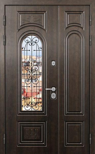 Двупольная стальная дверь со стеклопакетом и кованым узором №24 станет отличным выбором для тех, кто ценит не только безопасность, но и стиль. Внешняя и внутренняя отделка выполнены из МДФ, что придает двери элегантный и современный вид, а также обеспечивает высокую устойчивость к механическим повреждениям и износу. Стеклопакет и кованые элементы добавляют изысканности и уникальности, при этом сохраняя прочность конструкции. Двупольная стальная дверь со стеклопакетом и кованым узором №24 от производителя: быстрое изготовление и монтаж в Дедовске, индивидуальные размеры, широкий выбор материалов и фурнитуры, официальная гарантия до 10 лет.