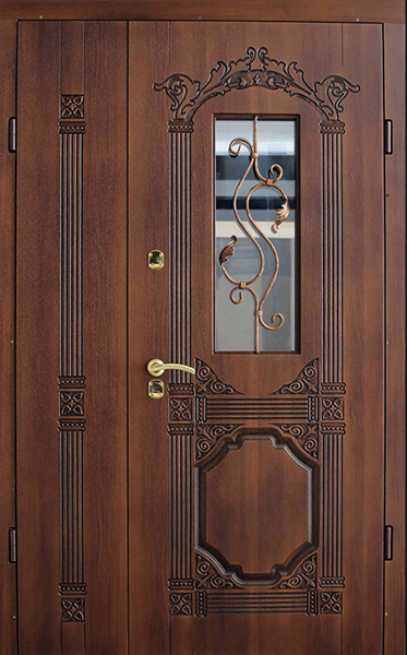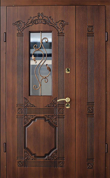 Уличная двухстворчатая дверь со стеклом и кованой решеткой №26 — это не только надежная защита для вашего дома, но и элемент, который подчеркнет его стиль и индивидуальность. Внешняя отделка из МДФ с ПВХ обеспечивает долговечность, устойчивость к внешним воздействиям и сохранение эстетического вида на долгое время. Добавление кованой решетки и стеклопакета придает двери элегантности, а также улучшает светопропускание, создавая комфортное освещение в вашем помещении. Уличная двухстворчатая дверь со стеклом и кованой решеткой №26 от производителя: быстрое изготовление и монтаж в Дедовске, индивидуальные размеры, широкий выбор материалов и фурнитуры, официальная гарантия до 10 лет.