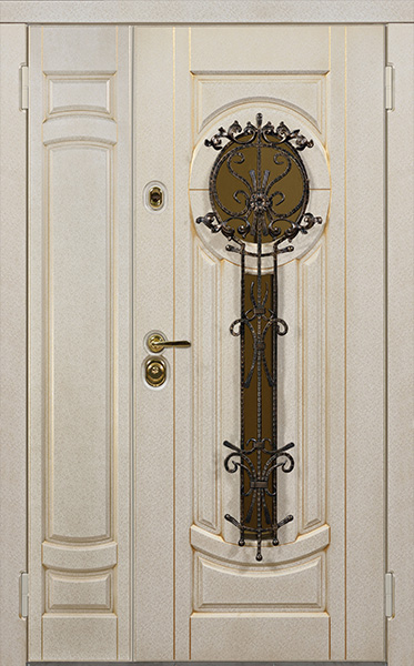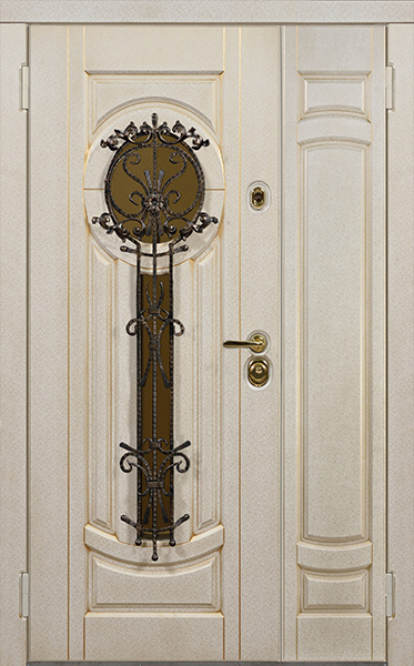 Двухстворчатая парадная дверь с ковкой и стеклом белая №30 — это сочетание красоты и надёжности. Конструкция из профильной трубы 50х25 мм и металлического листа толщиной 2 мм обеспечивает долговечность и стойкость к внешним воздействиям. Элементы ковки придают двери изысканный вид, а стеклопакет позволяет создать атмосферу лёгкости и прозрачности. Внешняя и внутренняя отделка выполнены из плиты МДФ, что делает дверь не только привлекательной, но и устойчивой к механическим повреждениям. Для дополнительной герметичности используются уплотнители с двумя контурами, а блокираторы обеспечат безопасность. Вариативность размеров и возможность добавления дополнительных опций, таких как шумо- и теплоизоляция, делают эту модель универсальной для установки в любом интерьере. Двухстворчатая парадная дверь с ковкой и стеклом белая №30 от производителя: быстрое изготовление и монтаж в Дедовске, индивидуальные размеры, широкий выбор материалов и фурнитуры, официальная гарантия до 10 лет.