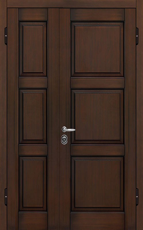 Двойная филенчатая дверь для загородного дома венге №7 сочетает в себе элегантность и прочность. Ее внешняя отделка выполнена из панелей МДФ с ПВХ, что придает двери современный вид, а также обеспечивает устойчивость к механическим повреждениям и долговечность. Каркас из профильной трубы 50х25 мм и полотно толщиной 2 мм гарантируют надежность и устойчивость к нагрузкам. Ребра жесткости из профильных труб 40х25 мм усиливают конструкцию, а уплотнение с двумя контурами защищает от проникновения влаги и пыли. Замки "Просам" и "Мосрентген" с тремя ригелями обеспечивают высокий уровень безопасности. В дверь можно добавить дополнительные элементы, такие как стеклопакет, зеркало или кованые детали, что позволяет адаптировать ее под любой интерьер. Терморазрывы в коробке и полотне способствуют лучшей теплоизоляции, обеспечивая комфорт в любое время года. Двойная филенчатая дверь для загородного дома венге №7 от производителя: быстрое изготовление и монтаж в Дедовске, индивидуальные размеры, широкий выбор материалов и фурнитуры, официальная гарантия до 10 лет.