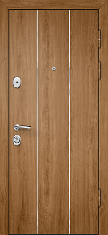 Современная входная металлическая дверь для частного дома №25 сочетает в себе стиль и надежность, что делает ее отличным выбором для частных домов, квартир и офисов. Благодаря прочной конструкции с каркасом из профильной трубы 50х25 мм и металлическим полотном толщиной 2 мм, она обеспечивает долгосрочную эксплуатацию и высокую защиту. Внешняя и внутренняя отделка выполнены из МДФ, что придает двери элегантный и современный вид, устойчивый к механическим повреждениям и воздействию внешней среды. Ребра жесткости из профильных труб 40х25 мм усиливают конструкцию, а два контура резинового уплотнителя эффективно защищают от проникновения холода и шума. В этой модели предусмотрены два замка (сувальдный и цилиндровый), что повышает уровень безопасности. Дополнительные опции, такие как установка зеркала, стеклопакета или кованых элементов, позволяют адаптировать дверь под любые интерьерные решения. Современная входная металлическая дверь для частного дома №25 от производителя: быстрое изготовление и монтаж в Дедовске, индивидуальные размеры, широкий выбор материалов и фурнитуры, официальная гарантия до 10 лет.