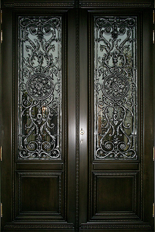 Входная металлическая дверь для частного дома со стеклом и ковкой №29