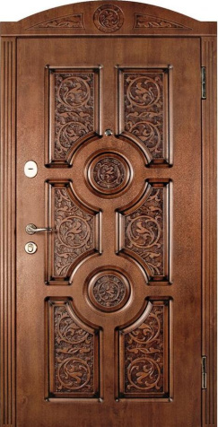 Арочный проём всегда смотрится благородно и подчёркивает архитектурный стиль дома, а витраж вносит в фасад лёгкость и игру света. Арочная входная дверь с витражом в частный дом №69 сочетает прочную металлическую основу с отделкой панелями из натурального дерева, которые сохраняют свою красоту долгие годы и стойко переносят ежедневную эксплуатацию. В конструкции предусмотрен лист стали толщиной 2 мм и система ребер жёсткости, что обеспечивает высокий уровень безопасности и долговечности. Терморазрыв в коробке и полотне защищает от промерзания и появления конденсата, сохраняя тепло в доме даже в сильные морозы. Итальянские замки Cisa цилиндрового и сувальдного типа дополняют защиту, гарантируя надёжность при ежедневном использовании. Возможность индивидуальной отделки, добавления зеркала, кованых элементов или стеклопакета делает эту модель не только функциональной, но и выразительной деталью экстерьера. Арочная входная дверь с витражом в частный дом №69 от производителя: быстрое изготовление и монтаж в Дедовске, индивидуальные размеры, широкий выбор материалов и фурнитуры, официальная гарантия до 10 лет.