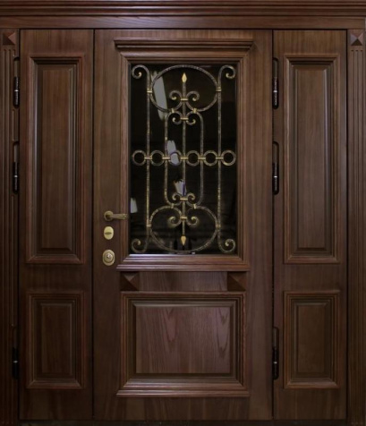 Входная металлическая дверь с порошковым покрытием, стеклом и ковкой в частный дом №27 — это не только надежность, но и стильное решение для вашего коттеджа или частного дома. Массив дерева, использованный в отделке снаружи и внутри, придаёт двери тепло и элегантность, в то время как прочная металлическая конструкция с профильной трубой и листом металла толщиной 2 мм обеспечивает долговечность и защиту. Стекло и кованые элементы добавляют изысканности, а порошковое покрытие защищает от внешних воздействий, сохраняя первоначальный вид. Терморазрыв в коробке и полотне помогает минимизировать теплопотери, а эффективная система уплотнения с двумя контурами гарантирует уют и тишину в вашем доме. Входная металлическая дверь с порошковым покрытием стеклом и ковкой в частный дом №27 от производителя: быстрое изготовление и монтаж в Дедовске, индивидуальные размеры, широкий выбор материалов и фурнитуры, официальная гарантия до 10 лет.