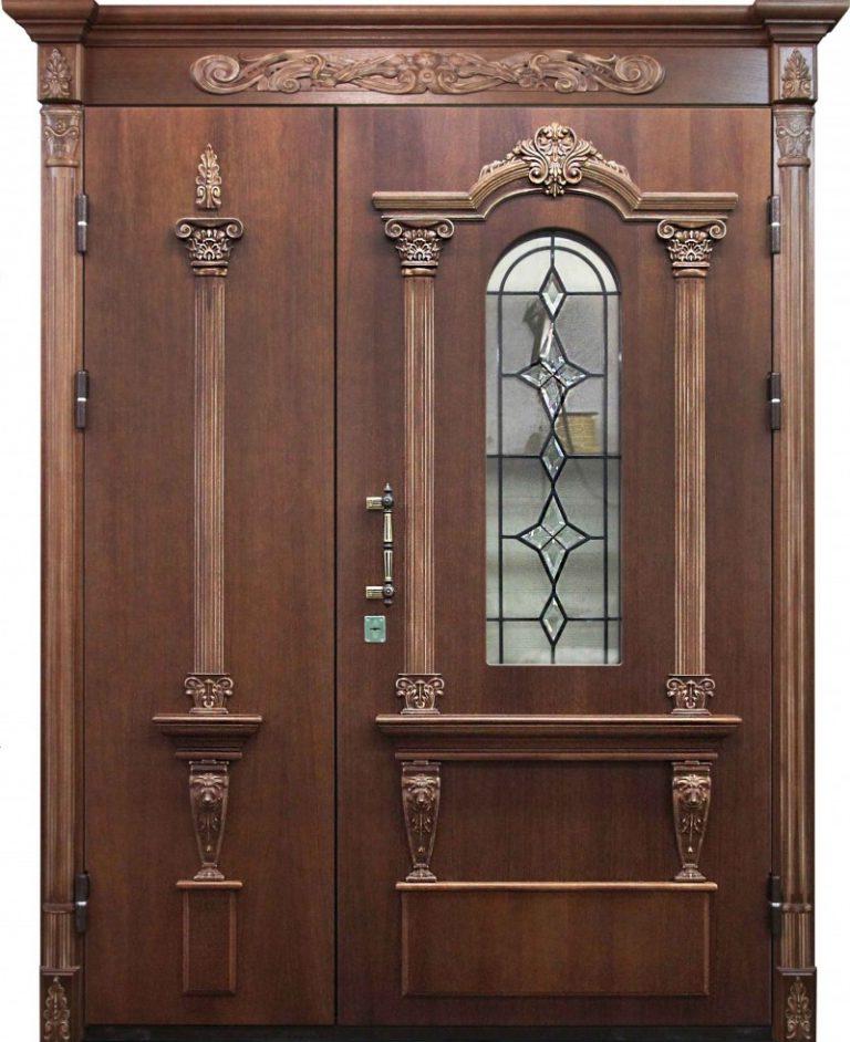 Эффектная дверь входная с окном №337 создана для парадных решений в коттеджах и частных домах, где важен не только уровень безопасности, но и выразительность архитектурного облика. Прочный каркас из стальной профильной трубы с листом металла толщиной 2 мм и системой ребер жесткости обеспечивает надежность конструкции, а отделка массивом дерева придает ей теплый и представительный вид. Натуральное дерево отличается стойкостью к царапинам и ударам, долго сохраняет форму и цвет, что делает дверь практичной для эксплуатации на улице. Встроенное окно добавляет естественного света и визуально облегчает массивное полотно, создавая гармонию между защитой и эстетикой. Двойной контур уплотнителей препятствует проникновению холода и влаги, блокираторы усиливают безопасность. Такая высокая дверь становится не только защитой, но и ярким акцентом фасада, подчеркивающим статус хозяев дома. Дверь в частный дом входная с окном №23 от производителя: быстрое изготовление и монтаж в Дедовске, индивидуальные размеры, широкий выбор материалов и фурнитуры, официальная гарантия до 10 лет.