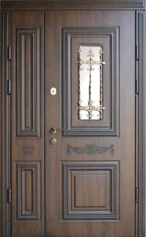 Натуральный дуб в отделке придаёт конструкции основательность и ощущение уюта, а стальной каркас с листом металла толщиной 2 мм и системой ребер жёсткости обеспечивает надежную защиту от взлома. Входная дверь с окном в частный дом №59 удачно сочетает массивность и лёгкость: встроенное окно пропускает дневной свет и делает прихожую более просторной, сохраняя при этом высокий уровень безопасности. Для защиты от сквозняков предусмотрены два контура уплотнения, а терморазрыв в коробке и полотне предотвращает промерзание в холодный сезон. Итальянские замки Cisa цилиндрового и сувальдного типа дополняют надежность, гарантируя спокойствие владельцев. Возможность выбрать направление открывания, добавить зеркало, кованые элементы или умный электронный замок позволяет адаптировать модель под любые предпочтения, сохраняя её презентабельный облик и долговечность. Входная дверь с окном в частный дом №31 от производителя: быстрое изготовление и монтаж в Дедовске, индивидуальные размеры, широкий выбор материалов и фурнитуры, официальная гарантия до 10 лет.