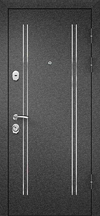 Дизайнерская современная дверь для дома №7 станет ярким акцентом вашего интерьера. Она идеально подходит для установки в частных домах, квартирах или офисах, придавая помещению стиль и современный шарм. Внешняя отделка с молоточковым напылением придает двери устойчивость к механическим повреждениям и атмосферным воздействиям, сохраняя её внешний вид на долгое время. Внутреннее покрытие из МДФ добавляет прочности и долговечности. Дополняет дизайн зеркало, которое не только украшает дверь, но и визуально расширяет пространство. Конструкция с металлическим каркасом и листом металла толщиной 2 мм обеспечивает высокую надежность, а профильные трубы усиливают жесткость полотна. Два контура уплотнителей защищают от холода и сквозняков, обеспечивая дополнительный комфорт. Дизайнерская современная дверь для дома №7 от производителя: быстрое изготовление и монтаж в Дедовске, индивидуальные размеры, широкий выбор материалов и фурнитуры, официальная гарантия до 10 лет.
