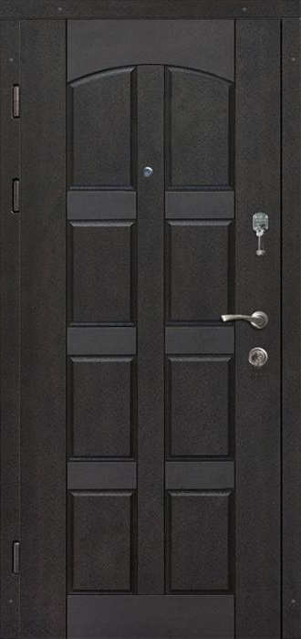 Входная дверь для дома уличная №18 разработана для установки в условиях, где от двери требуется максимум прочности и устойчивости к погодным испытаниям. Молотковое напыление на внешней стороне не только придает фактурный декоративный эффект, но и защищает поверхность от влаги, ударов и мелких повреждений, сохраняя привлекательный вид долгие годы. Внутри дверь отделана панелями МДФ с ПВХ-покрытием, которые отличаются стойкостью к царапинам и удобством в уходе, а также гармонично вписываются в любой интерьер прихожей. Каркас и полотно выполнены из профильных труб, усиленных стальным листом толщиной 2 мм и дополнительными ребрами жесткости, что делает конструкцию надежной и долговечной. Два контура резинового уплотнителя эффективно защищают от сквозняков и уличной пыли. Особое внимание заслуживает наличие терморазрыва в коробке и полотне: эта технология предотвращает промерзание и образование конденсата, обеспечивая сохранение тепла даже в сильные морозы. Входная дверь для дома уличная №18 от производителя: быстрое изготовление и монтаж в Дедовске, индивидуальные размеры, широкий выбор материалов и фурнитуры, официальная гарантия до 10 лет.